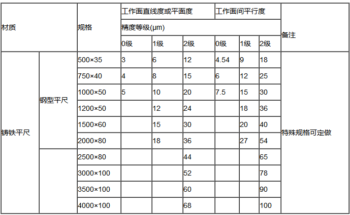 是按JB/T7977-99標準制造,采用HT250灰鐵鑄造,工作面采用刮研或精密磨削工藝,是用來測量工件的直線度和平面度及設備的安裝主,使用溫度(20±5)℃。使用過程中要注意平行