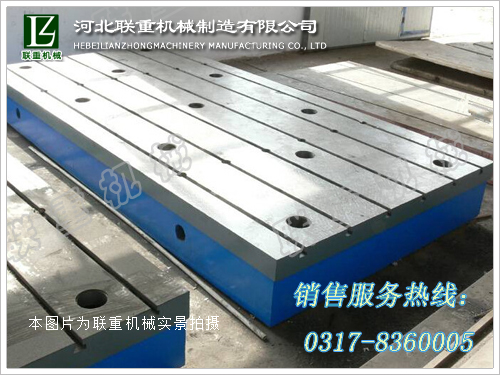 機床工作臺、鑄鐵機床平臺、T型槽落地鏜床地平臺、固定機床工作臺。落地鏜銑床工作臺,落地銑床工作臺按GB7947-1999標準制造。平板制成雙圍子、單圍子和箱體式。其工作面外形分為長方形、正方形或圓形,工作面上可加工V形、T形、U形槽和圓孔、長孔等。